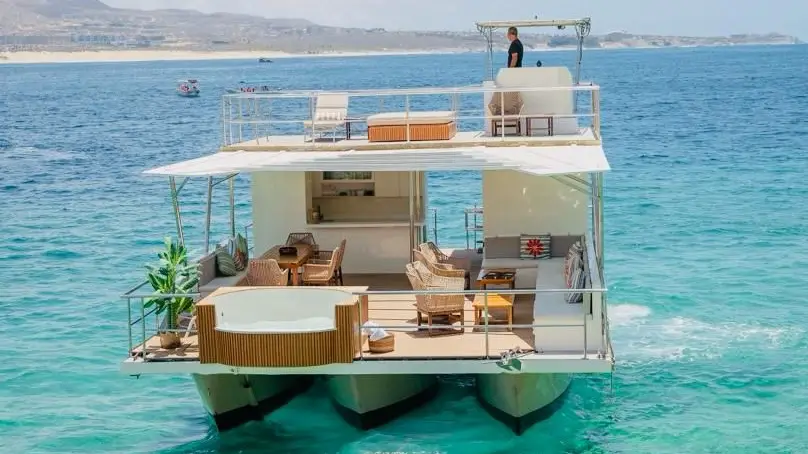 Embark on an elite escape where time pauses and every moment becomes iconic. Perfect for celebrations or special occasions, this luxurious catamaran offers unparalleled comfort featuring the only onboard pool and jacuzzi of its kind, making us truly unique. Savor a gourmet tasting menu crafted with the finest ingredients, paired with an open bar. Enjoy personalized activities like snorkeling, paddleboarding, and exploring pristine beaches such as Balconcito, Cannery, and Medano (include few towels). Witness breathtaking landmarks and, in season, majestic whales. As dusk falls, the catamaran transforms with soft lighting for unforgettable sunsets, followed by an exclusive under-the-stars party tailored to your music preferences. Welcome aboard Prestige Afloat where luxury, relaxation, and legendary moments meet at sea